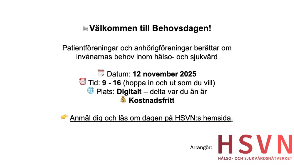En möjlighet att får direkt information från patienter och patient- / anhörigföreningar samt ur HSVN:s patientbehovsdatabas.